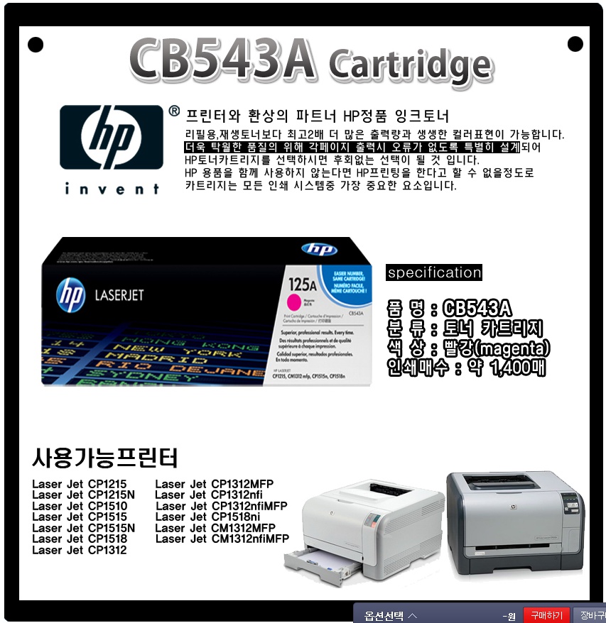 HP토너 CB543A MAGENTA LASERJET