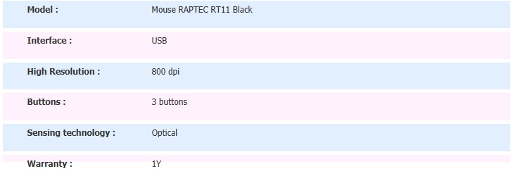 Optical USB Mouse RAPTEC(RT11) B